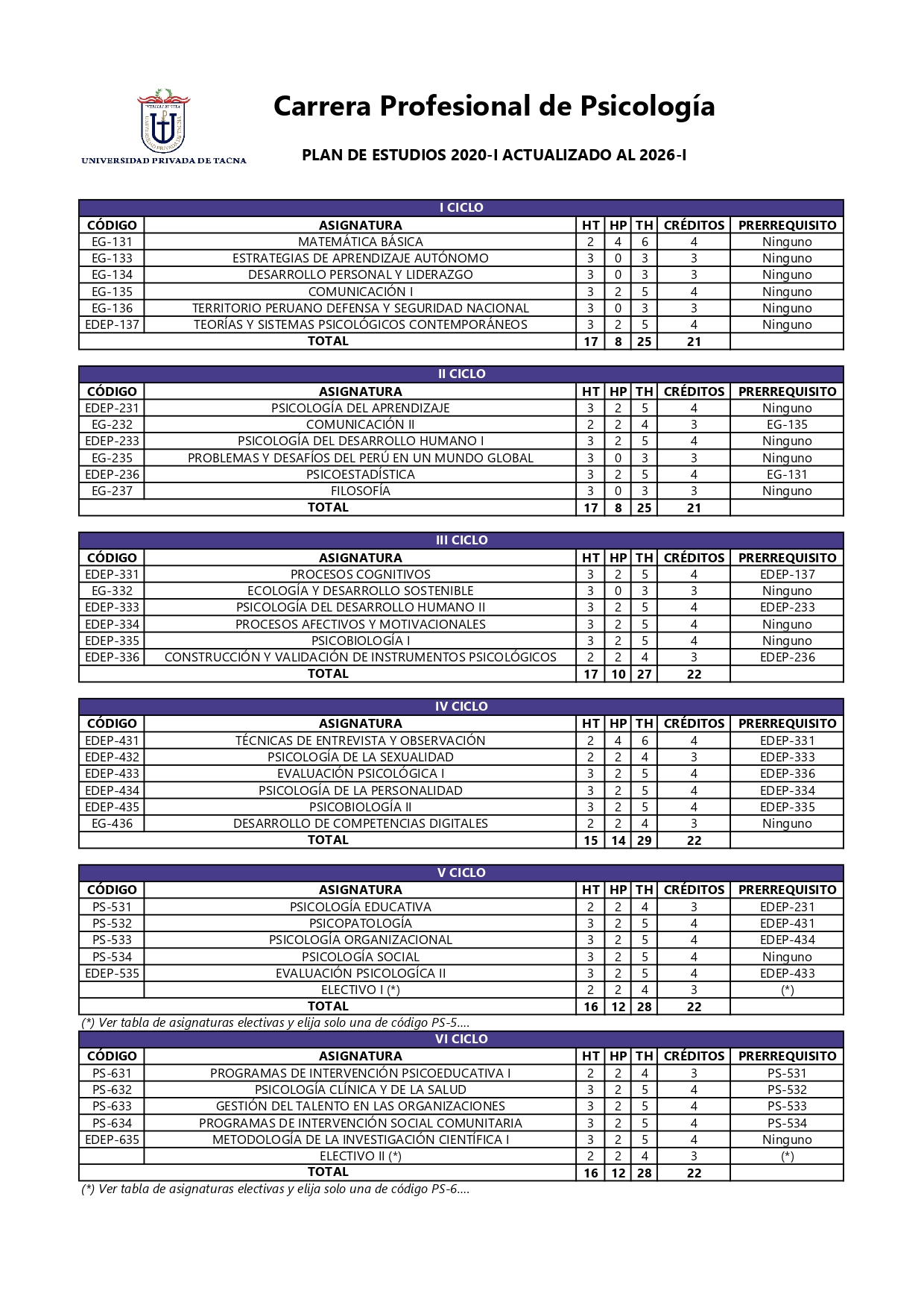 PLAN DE ESTUDIOS VIGENTE