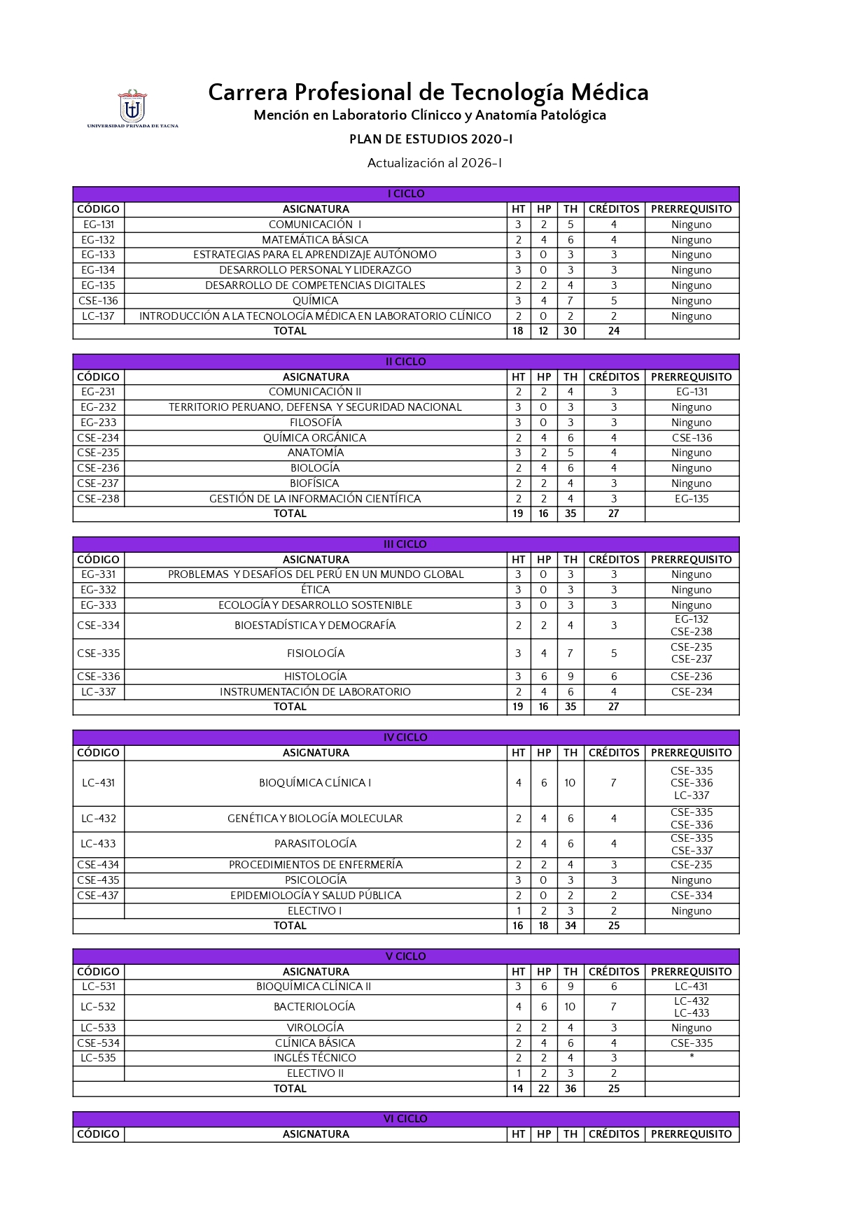 | PLAN DE ESTUDIOS VIGENTE |