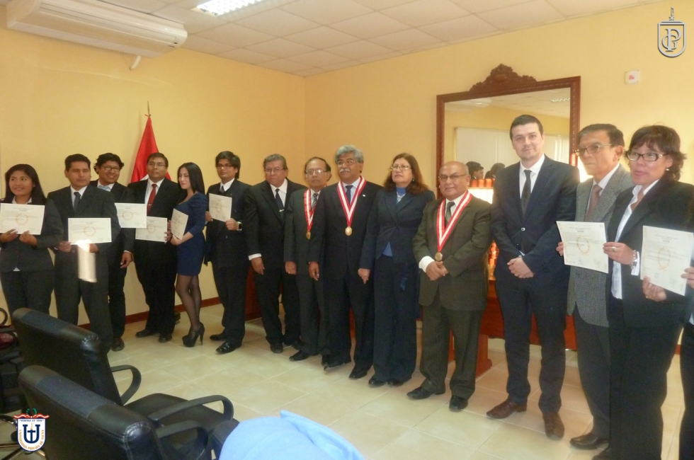 El agregado de Cooperación Universitaria de la Embajada de Francia en el Perú Philippe Benassi fue el encargado de entregar a nombre de la Universidad de Burdeos los diplomas de Magíster en Management Internacional a nueve de los profesionales tacneños que durante el 2012 y 2013 siguieron el programa de capacitación de doble grado entre la universidad francesa y la Universidad Privada de Tacna.