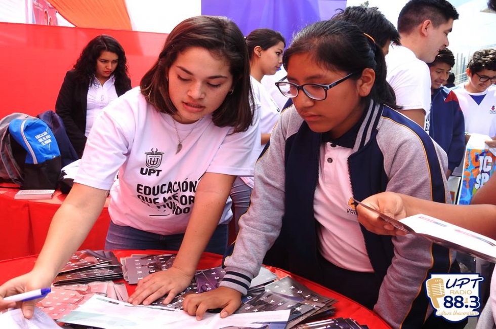 Cientos de estudiantes de diversas instituciones educativas, ubicadas en el distrito Alto de la Alianza, visitaron el stand de la Universidad Privada de Tacna durante la XXV Feria de Orientación Vocacional e Información Ocupacional organizada por la Dirección Regional de Trabajo y Promoción del Empleo en el frontis de la municipalidad provincial.