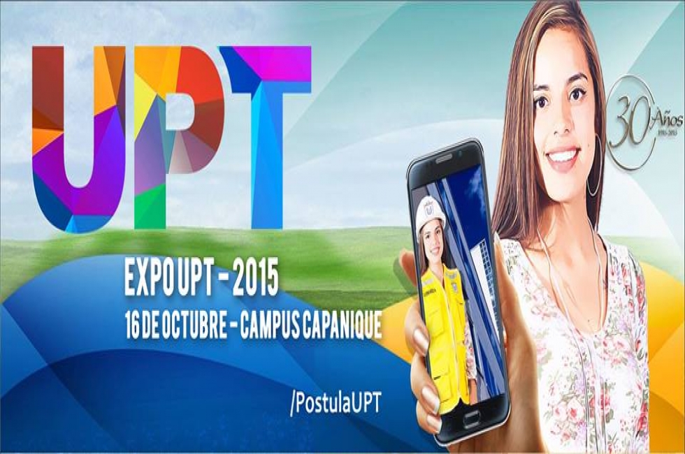 Este viernes 16 de octubre en el Campus Capanique se desarrollará la Expo UPT 2015, que tiene como objetivo mostrar a los escolares que cursan el 5to año de secundaria la oferta académica con la que cuenta la Universidad Privada de Tacna que cuenta con 6 facultades y 22 carreras profesionales que ofrecen diversas especialidades a los futuros universitarios.