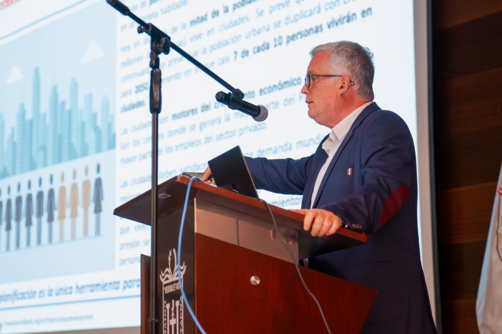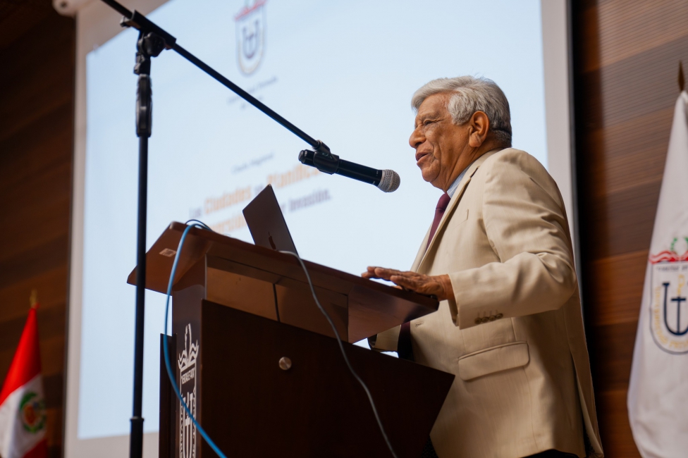 El ex viceministro de vivienda y urbanismo Miguel Romero y el reconocido urbanista Poul Knudsen fueron los ponentes principales del ciclo de Conferencias Magistrales que organizó la Facultad de Arquitectura y Urbanismo al celebrar su 32 aniversario de creación, la actividad académica se desarrollo en la Sala de Usos Múltiples “Javier Ríos Lavagna”.