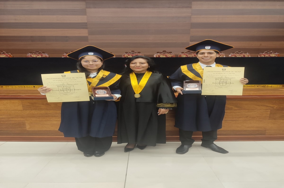 La FAU de la UPT celebro la ceremonia de graduacion 2024-II "Alejandro Aravena" en la Sala Javier Rios Lavagna. Graduados recibieron diplomas y presentes. La Decana Nelly Gonzales los felicito.
