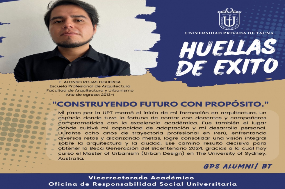 Felicitamos al arquitecto Fernando Alonso Rojas Figueroa, egresado de la Facultad de Arquitectura y Urbanismo de la Universidad Privada de Tacna.